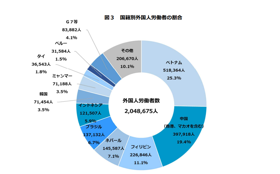 国籍別では、ベトナム人が最多となっており、中国人、フィリピン人と続きます。